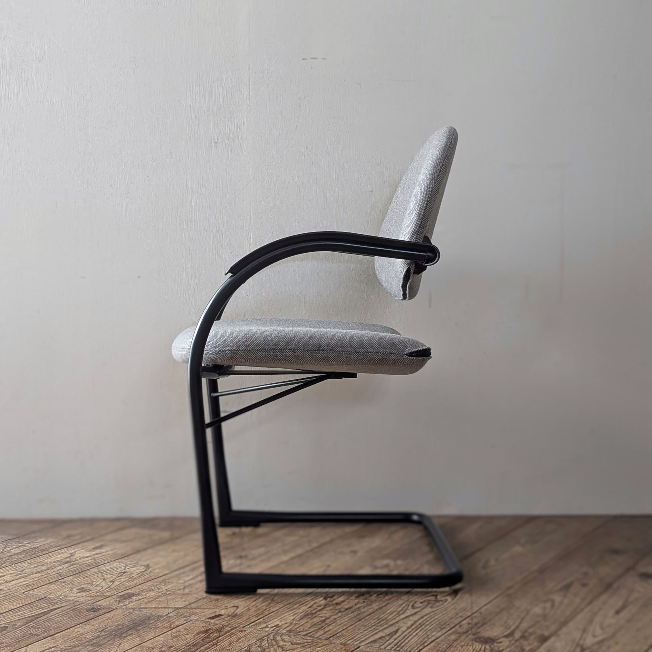 シート後方が浮いたように見えるカンチレバー構造のイスです