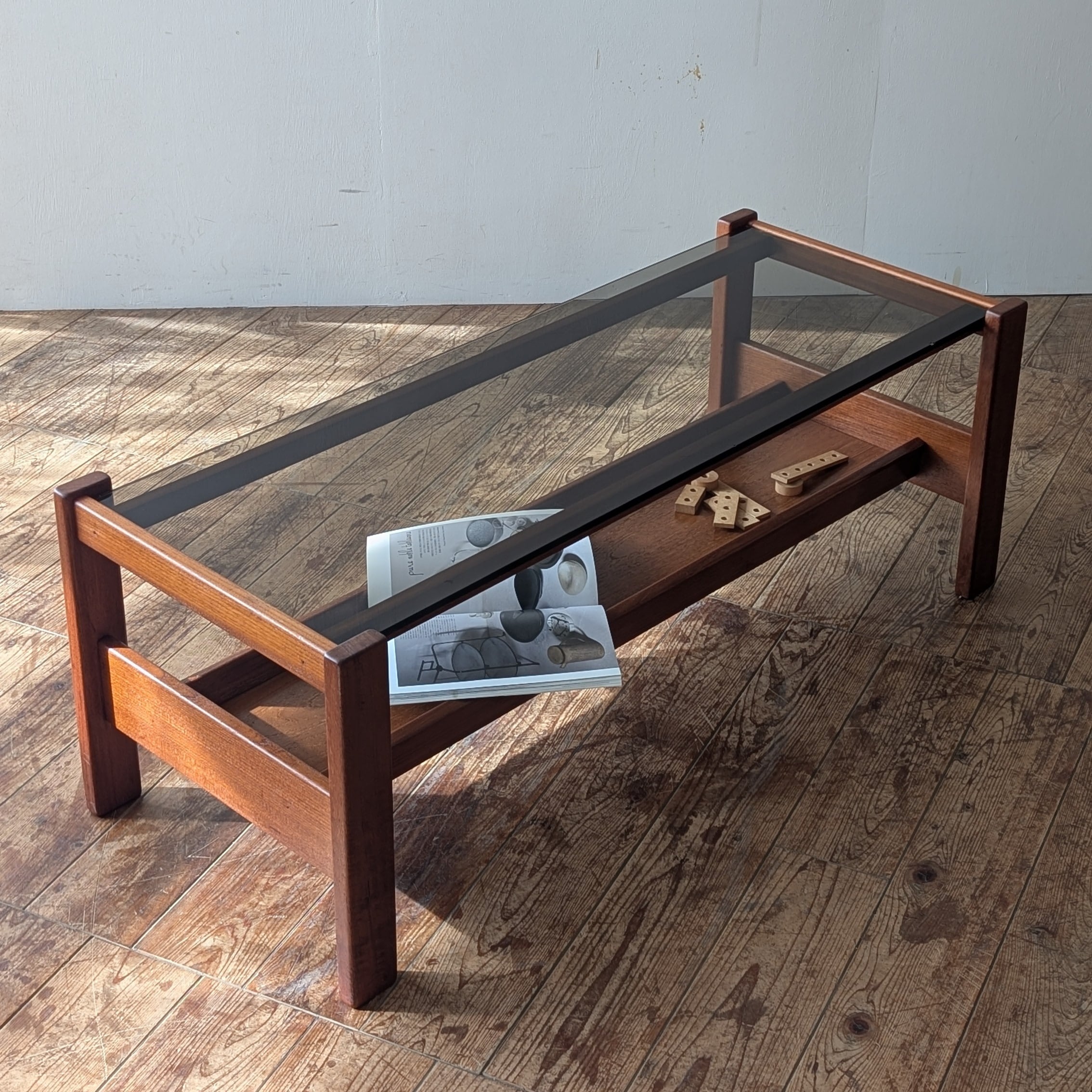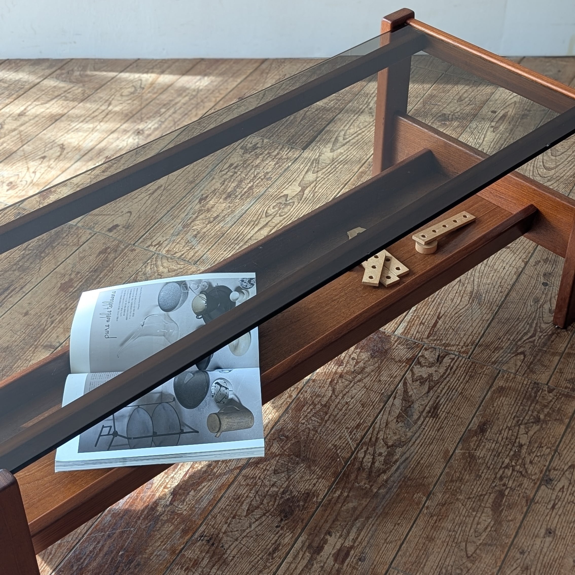 チークの無垢材でつくられたコーヒーテーブルです